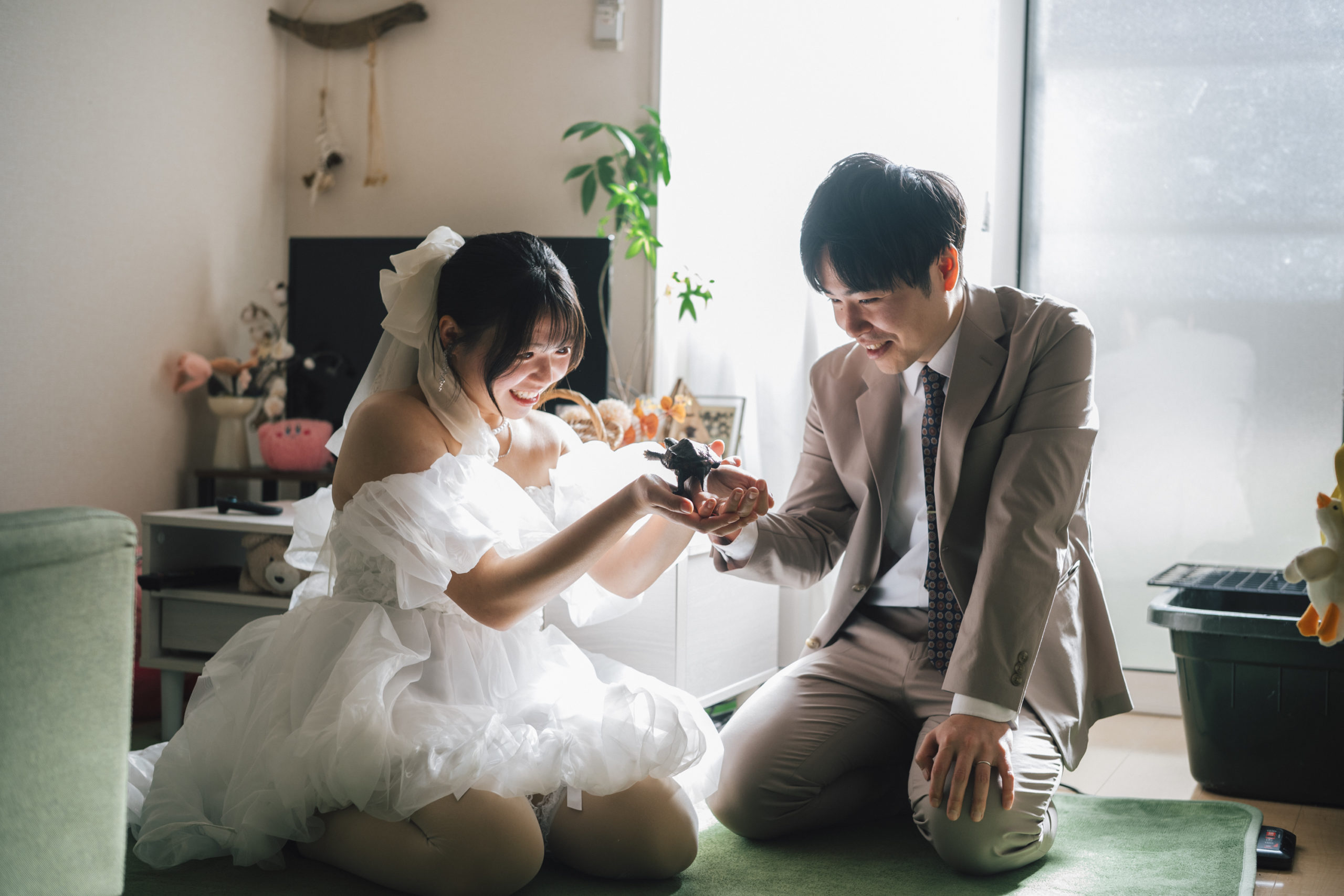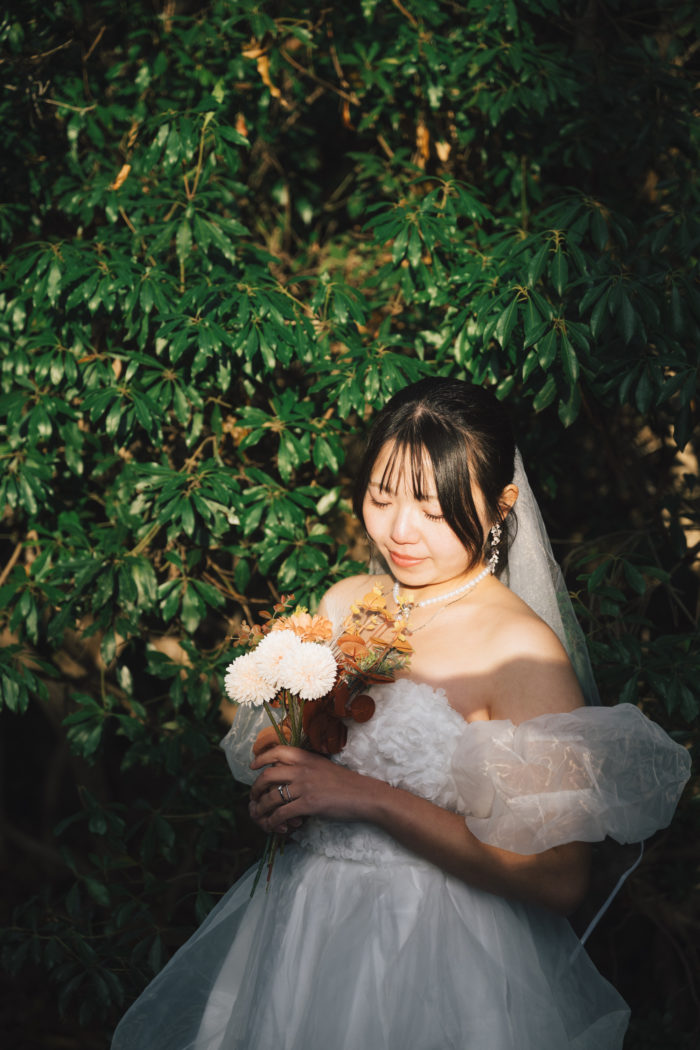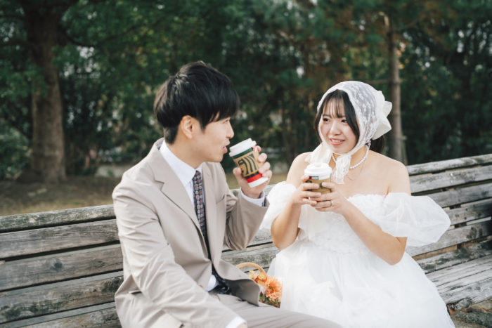 フォトウェディングであっても、最初の一枚が「いつもの暮らし」から始まると、表情や距離感が自然に落ち着いていきます。特別な日を、日常の延長線上にそっと置く。そんな入り口が、この日には合っていました。