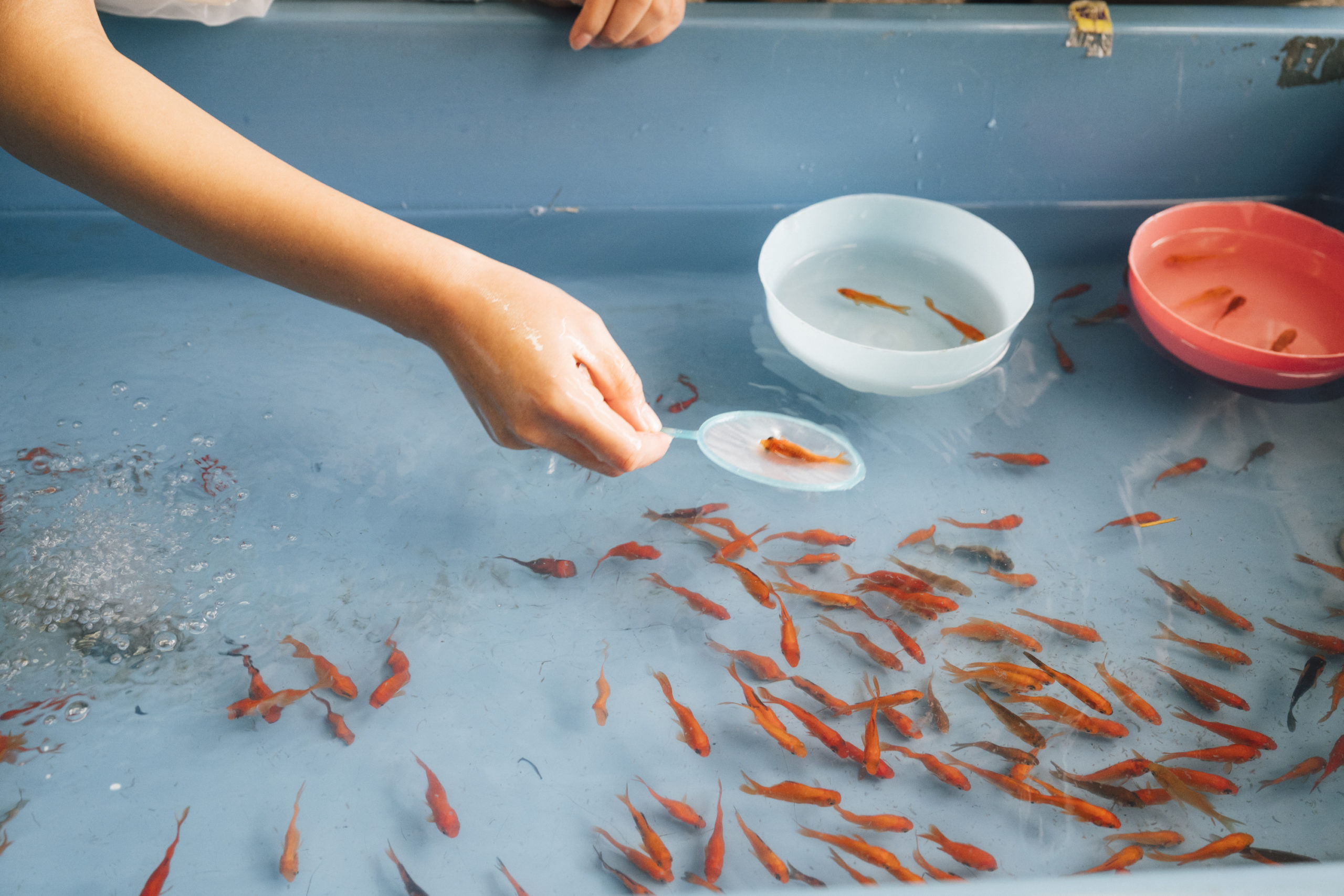 水面をのぞき込み、網をそっと動かす仕草。言葉にしない時間が、写真の中に静かに残ります。